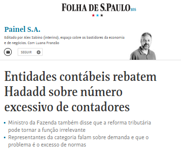 Folha de S.Paulo repercute manifestação da FENACON e de entidades sobre as falas do ministro contra a classe contábil
