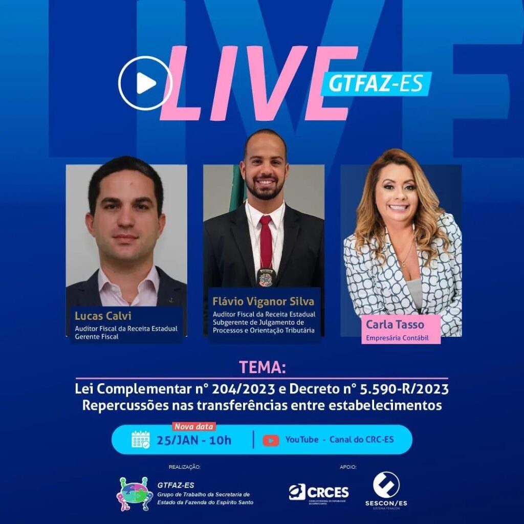 A vice-presidente do CRCES, Carla Tasso, que coordena o grupo GTFAZ-ES, vai receber os auditores fiscais da Receita Estadual, Lucas Calvi e Flávio Viganor Silva.