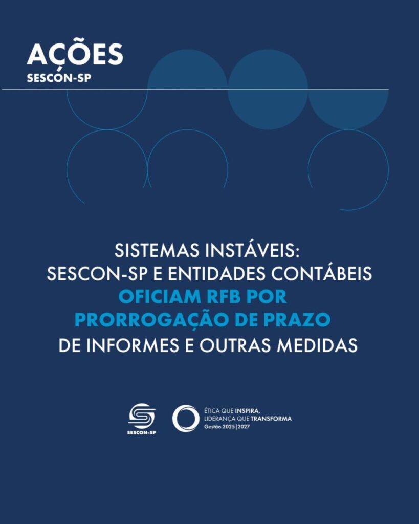 Diante das recorrentes instabilidades nos sistemas da Receita Federal, o Sescon-SP, a Aescon-SP e as entidades congraçadas da contabilidade paulista protocolaram hoje, 25 de fevereiro, ofício à Superintendência da Receita Federal do Brasil em São Paulo solicitando providências urgentes. A manifestação foi motivada pelo volume expressivo de relatos encaminhados por profissionais e organizações contábeis, que […]