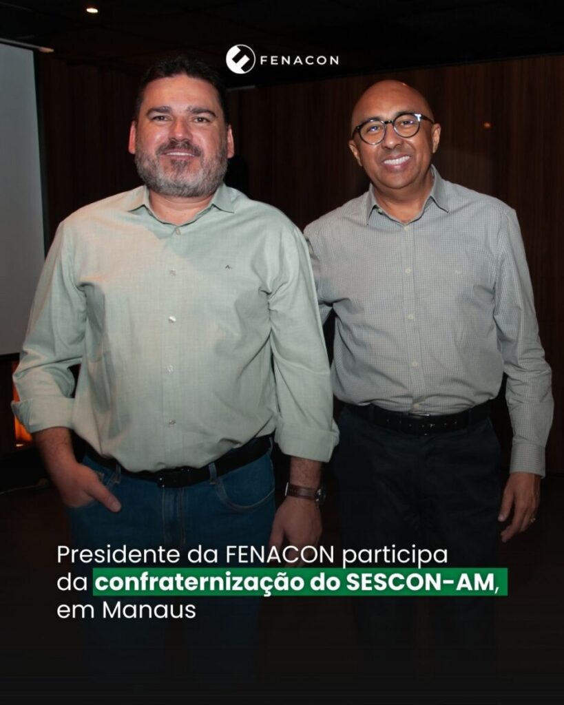 O presidente da FENACON, Daniel Coêlho, participou da confraternização do Sescon Amazonas, em Manaus, neste sábado (13). O evento reuniu toda a equipe do Sescon AM, bem como a vice-presidente da FENACON Região Norte, Cleide Barreto, para comemorar as conquistas dos sindicatos e o encerramento das atividades do ano de 2025. Durante o evento, também […]